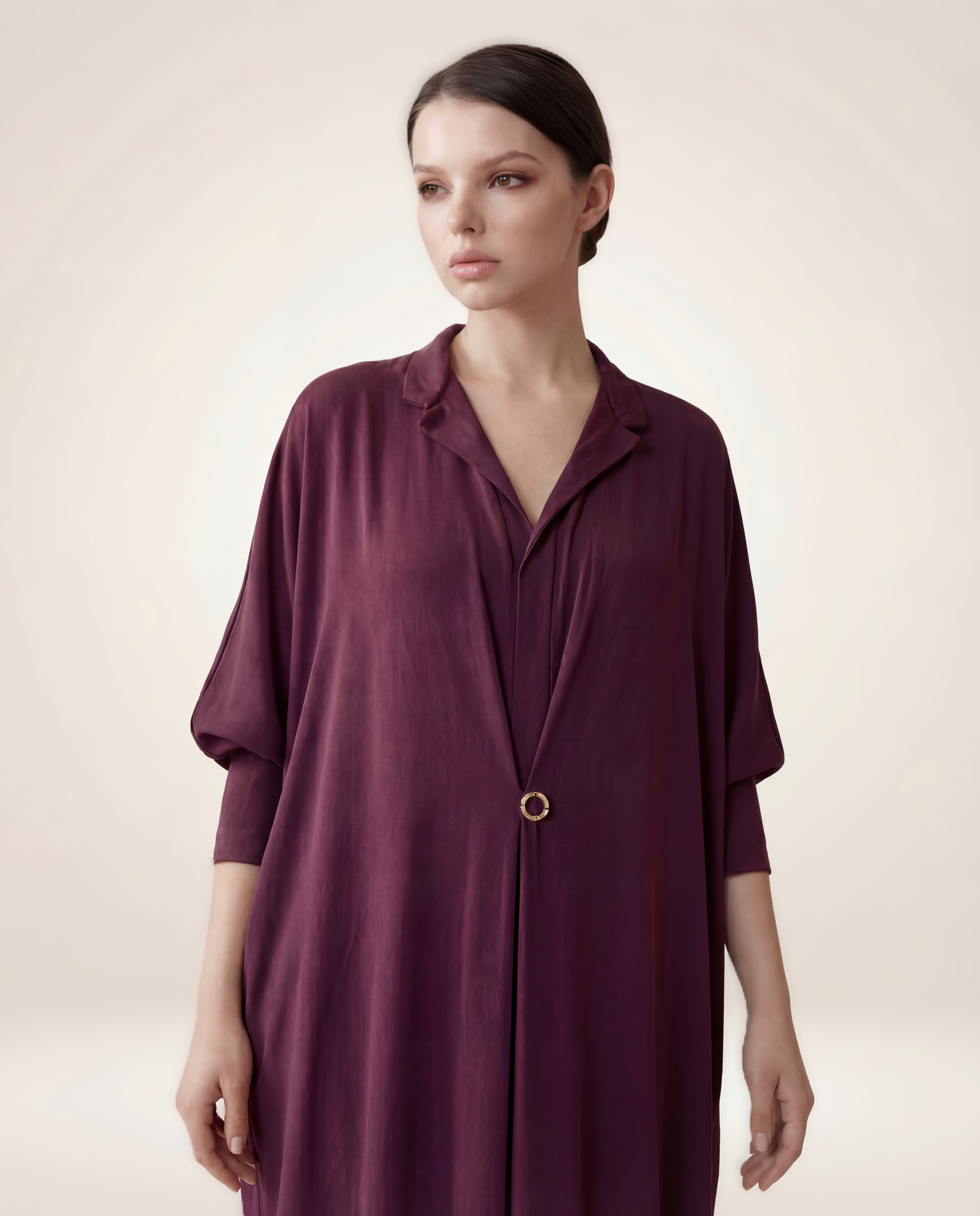 Effortlessly flowing, this soft-draped kaftan is designed for a relaxed, comfortable fit.