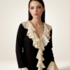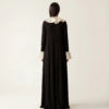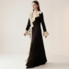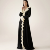 Lightweight kaftan dress made from striped, silky fabric, featuring subtle shoulder pads for extra structure, crafted for comfort, ease of movement, and relaxed elegance. movement, and effortless elegance.
