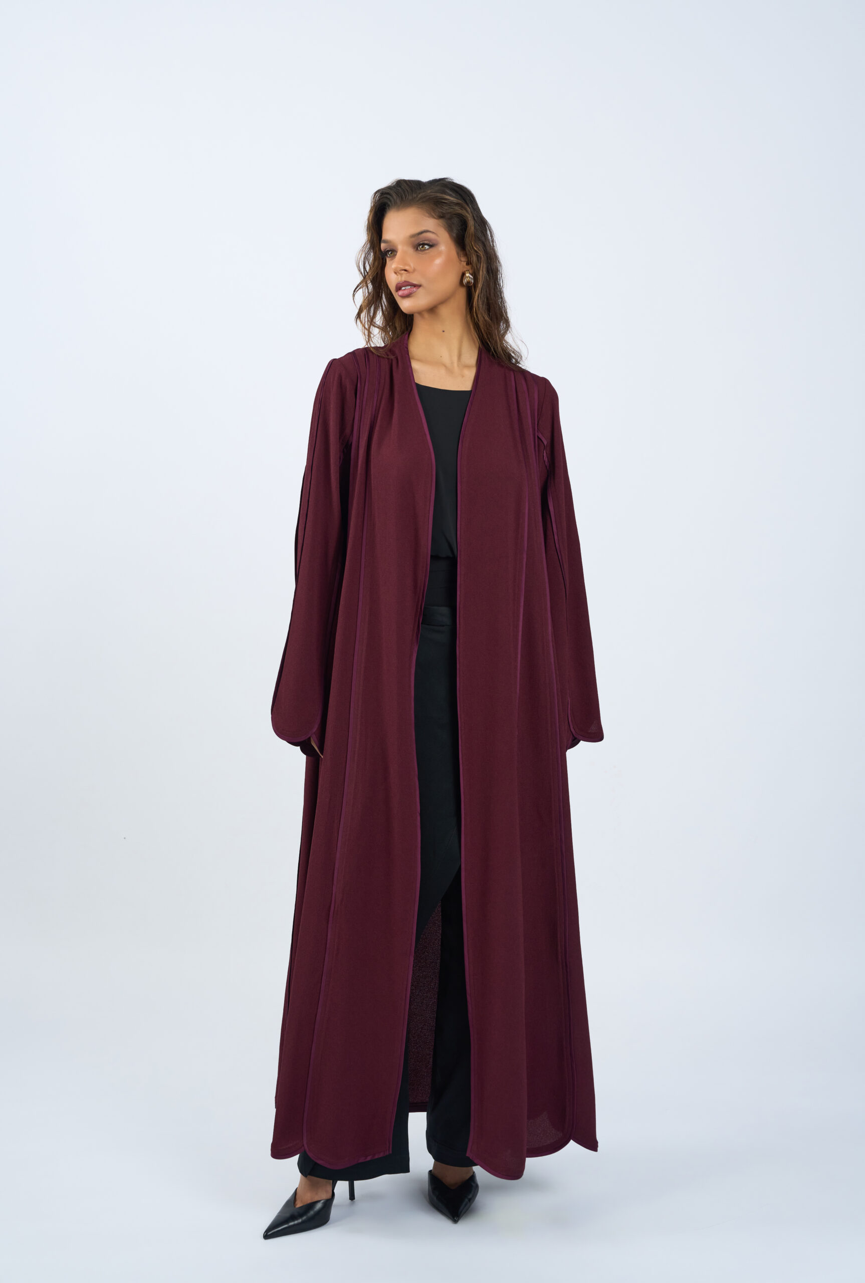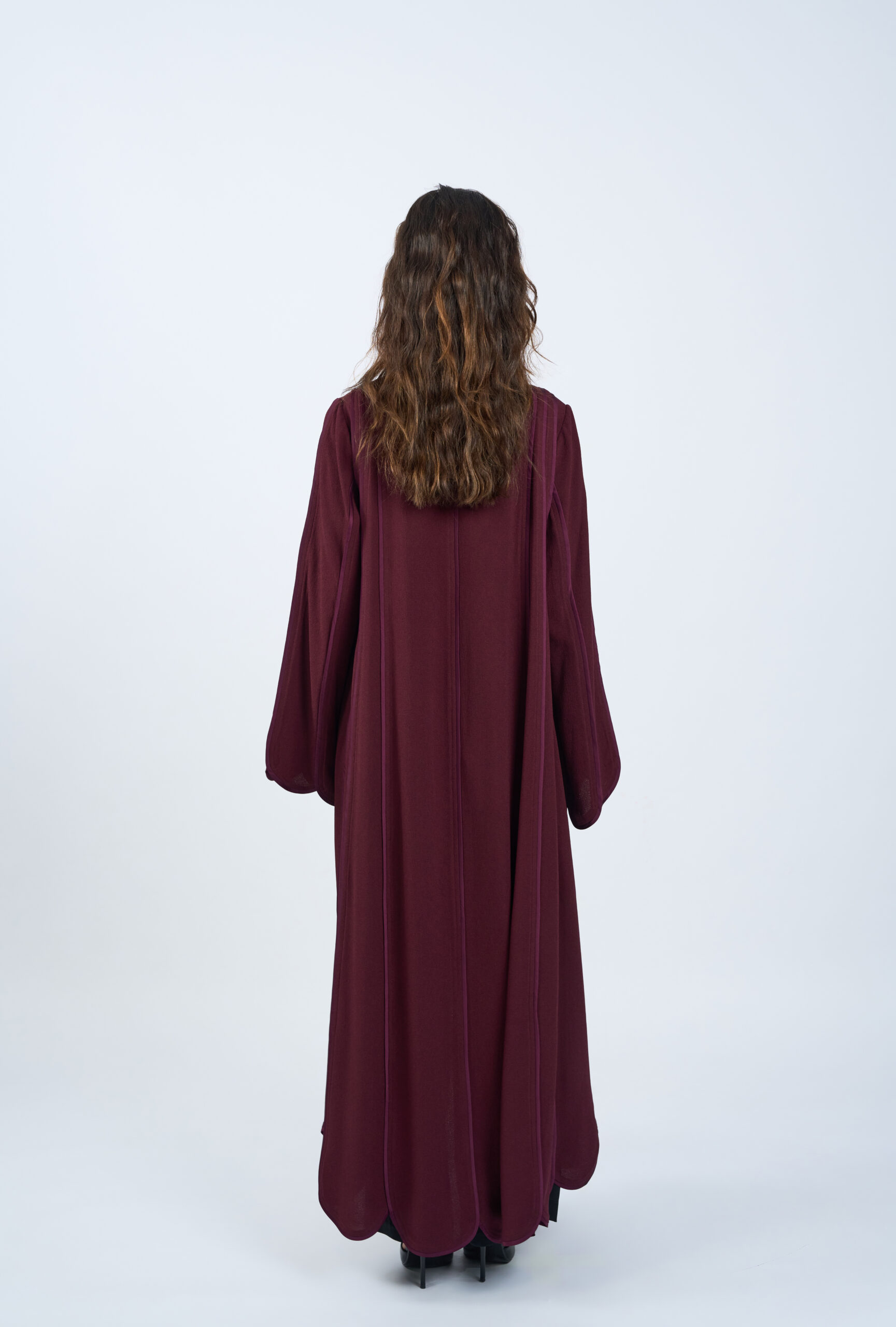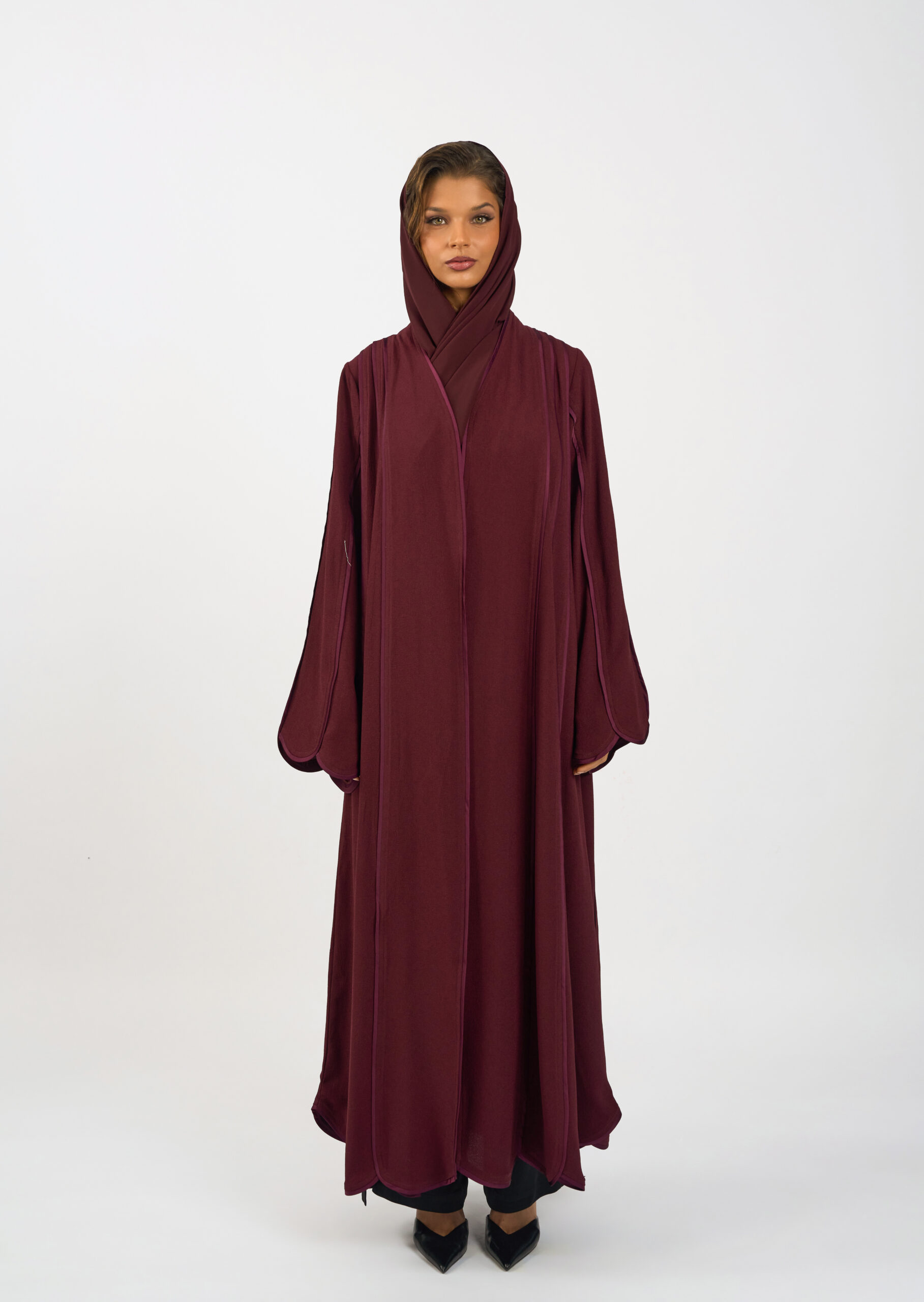 The softly structured sleeves with curved detailing add subtle dimension, while the open front allows for versatile layering. Elegant, timeless, and distinctly ours — this piece embodies the essence of our brand’s modern, modest aesthetic.